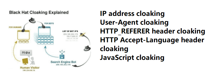 What happens when you insert the term “cloaking” into the Google search bar? You will be given a Google Knowledge result which first explains “cloaking” as a search engine technique that presents completely different content or URL to the user than to the search engine spider.